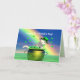 Card with my 3d artwork of a winking white cat in a pot of gold with shamrocks flying around and a bright rainbow. Text says "Happy St. CATrick's Day!"