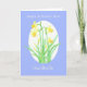 A pretty Greeting Card for St David's Day, 'From All of Us', with a clump of daffodils in a light blue border, from a watercolour painting by Judy Adamson.