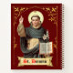 St. Dominic de Guzman (1170-1221) was a Castilian Spanish priest who founded the mendicant Order of Preachers (Dominicans). + Arm upraised with his finger pointing to heaven, St. Dominic is depicted here preaching. He is tonsured and is clad in the habit of his order—a belted cream-coloured robe and cream-coloured scapular under a black hooded mantle. A rosary hangs from his belt. With his left hand, he holds a spray of lilies of purity and an open book. The pages of the book bear the words “Aut pro Deo; Aut de Deo”, that is, “Either for God or about God”. According to the testimony of Brother Paul of Venice, a priest of the Order of Preachers, at the canonisation hearing of St. Dominic at Bologna in August, 1233, the founder always spoke to God or about Him. So near and dear to his heart were these practices that St. Dominic recommended them to his brethren. They were also adopted in Article 31 of the Primitive Constitutions of the Order of Preachers. + Feast: August 8 + Image Credit (BEN 002): Figure of St. Dominic extracted from an antique Swiss devotional print originally published in chromolithography by Benziger, Einsiedeln, Switzerland, late 19th century, from the designer’s private collection of religious ephemera.