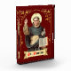 St. Dominic de Guzman (1170-1221) was a Castilian Spanish priest who founded the mendicant Order of Preachers (Dominicans). + Arm upraised with his finger pointing to heaven, St. Dominic is depicted here preaching. He is tonsured and is clad in the habit of his order—a belted cream-coloured robe and cream-coloured scapular under a black hooded mantle. A rosary hangs from his belt. With his left hand, he holds a spray of lilies of purity and an open book. The pages of the book bear the words “Aut pro Deo; Aut de Deo”, that is, “Either for God or about God”. According to the testimony of Brother Paul of Venice, a priest of the Order of Preachers, at the canonisation hearing of St. Dominic at Bologna in August, 1233, the founder always spoke to God or about Him. So near and dear to his heart were these practices that St. Dominic recommended them to his brethren. They were also adopted in Article 31 of the Primitive Constitutions of the Order of Preachers. + Feast: August 8 + Image Credit (BEN 002): Figure of St. Dominic extracted from an antique Swiss devotional print originally published in chromolithography by Benziger, Einsiedeln, Switzerland, late 19th century, from the designer’s private collection of religious ephemera.