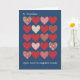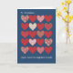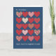 A chic Greeting Card to personalise for St Dwynwen' s Day (25 January) with rows of red and white patterned hearts on a deep blue background. St Dwynwen is the patron saint of lovers in Wales and this St Dwynwen's Day design is from a hand-painted paper collage by Judy Adamson.