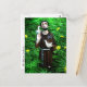 St. Francis of Assisi, born in Assisi in 1182, was a living manifestation to the world of Christ's poor and suffering life on earth. He is known to be the patron saint of animals and the environment. He was the founder of the Order of Friars Minor, more commonly known as the Franciscans. This postcard portrays St. Francis with two white doves in a green field of yellow wildflowers.