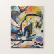 St. George III (1911) by renowned Russian painter Wassily Kandinsky is another abstract interpretation of the iconic figure of St. George, continuing the artist's exploration of symbolism and abstraction. In this piece, Kandinsky emphasizes dynamic, energetic forms and vibrant colours to convey the action of St. George battling the dragon, yet without direct representation. The artwork demonstrates Kandinsky's mastery in using shapes, lines, and colours to evoke the spiritual and emotional essence of the scene, further pushing the boundaries of abstraction. This piece reflects Kandinsky's commitment to translating emotional and metaphysical content into non-representational art.