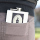The flask itself is fine. It’s a cheap flask, obviously bought in bulk, however am prepared to overlook that. Given that it is a personalized item, I would have liked to have seen gift boxing instead of the generic packaging. Terrible printing, and/or quality. It’s a cheap, tacky vinyl. It is not cut straight and is also applied in a way that it is overhanging the bottom, causing the glue to catch on items and it will eventually roll and tear, damaging the wrap.