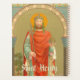 In this image done in the Beuron style of Benedictine art, St. Henry II (972-1024), Holy Roman Emperor, wears Imperial regalia—a crown, an ermine-lined vermillion red cloak over a teal robe, and carries a sceptre and orb symbolic of his temporal power. His crown, the Reichskrone, or Imperial Crown of the Holy Roman Empire, is a distinctive one comprised of eight hinged arch-shaped metal plates surmounted by a cross in the front with a high hoop connecting the front of the crown to its back. A layman and not a consecrated religious, nevertheless, St. Henry was known for his personal holiness practicing Benedictine values as an Oblate. St. Henry is patron saint of Benedictine Oblates as well as people rejected by religious orders, the physically challenged, and childless couples. + Feast: July 13 + Image Credit (BBS 10): Antique image of St. Henry II, Emperor, OSB [Order of St. Benedict], originally published in chromolithography by B. Kühlen, Mönchengladbach, Germany (Series Benedictina, Schola art. Beuron., unnumbered), late 19th-early 20th century, from the designer’s private collection of religious ephemera.