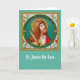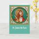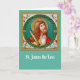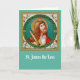 This roundel features St. James the Less shouldering a large, heavy club, a fuller’s club, the instrument of his martyrdom and his primary symbol. His hands folded in prayer is not just a stock pious pose though, but another significant attribute: So intense was his prayer life that St. James reputedly developed thick calluses on his knees earning him the nickname “[Old] Camel’s Knees”! (Eusebius, Hist. Eccl. 2:23-24 after Hegesippus). + Feast: May 3 + Image Credit (JMAS 05): Antique image of St. James the Less from a late 19th-century devotional print in chromolithography with gilt accents originally published by Josef Müller, Art Publisher, Munich, Germany, from the designer’s private collection of religious ephemera. The image is one of twelve in the publisher’s Apostle Series (No. 12155). + Prefer a different background colour? See the suggested coordinating hues on the Colour Palette postcard for this image. Colour Palette postcards are found in an image's associated COLLECTION and in the Special COLLECTION devoted just to colour palettes.