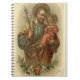 Beautiful vintage image of St. Joseph holding a lily and the Baby Jesus in his arms.