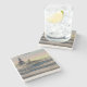The coasters are gorgeous, a quality feel and heavy weight. They look like a precious archeological find. A rustic stone juxtaposed with a modern floral black and white print. I like the way the print goes slightly imperfect on the cut stone edges giving them a kind-of natural beauty.