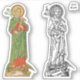 The figures on these stickers were extracted, respectively, from a c. 1890 chromolithograph and an 1889 black-and-white litho. In both cases, St. Joseph is portrayed in his role as protector of The Church. The towering figure of St. Joseph, much larger and grander than the dragon, tramples out Satan’s power over the world by crushing the dragon beneath his feet and toppling the crown from the dragon’s head thus ending Satan’s dominion over humankind. + Principal Feast of St. Joseph: March 19; Feast of St. Joseph the Worker: May 1 + Image Credits for Extracted Figures (Left - VVP 009): Antique chromolithograph of Saint Joseph, Protector of the Church, Pray For Us [H. Jozef, beschermer der H. Kerk, B.V.O.] originally published by K[arel] v[an] d[er] Vyvere-Petyt, Bruges, Belgium, c. 1890; (Right - DL 01): Antique lithograph of Sancte Joseph, Patronus Ecclesiae [Saint Joseph, Patron of the Church], originally published by Desclée, Lefebvre et Cie, Tournai, Belgium, 1889. Both original devotional prints are from the designer’s private collection of religious ephemera.