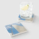 The coasters are gorgeous, a quality feel and heavy weight. They look like a precious archeological find. A rustic stone juxtaposed with a modern floral black and white print. I like the way the print goes slightly imperfect on the cut stone edges giving them a kind-of natural beauty.
