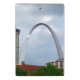 A clip board featuring a photo of St. Louis taken from the arch and a photo of the arch.