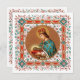 St. Louis IX the King (1214-1270) ruled France for forty-four years guided by his Catholic Christian values. Surely, in his eyes, the acquisition for France of the Crown of Thorns believed to have been worn by Christ during His Passion must have been regarded as one of his crowning achievements. Revered for centuries in Jerusalem, the Crown of Thorns was transferred to Byzantium about 1063. In 1238, King St. Louis IX was offered it for a cash settlement by Baldwin II ‘the Broke’, the Latin Emperor of Constantinople. The French monarch received the Crown at the coastal town of Sens with great pomp and later installed it with solemn ceremonies in the chapel he especially built for it in Notre Dame in Paris. + Here St. Louis wears both a halo and his own golden crown as well as an ermine-lined mantle in dark aqua that is decorated with gold fleur de lis. He reverently carries the Crown of Thorns, which emits spiked rays of light, on a plump red cushion. The scene is confined to a ‘medallion’ or circular decorative device and takes place against a generic background of entwined swirls. The whole is enclosed in an elaborate square rinceau framework. A rinceau is a decorative form consisting of sinuous, entwined vines and tendrils or branches and foliages. Rinceau borders are very common in Gothic illuminated manuscripts and the 19th-century devotional prints they inspired. Epilog: Having survived the French Revolution against all odds, the Crown of Thorns was again endangered on Monday, 15 April 2019, when Notre Dame burned. It was, however, among the relics rescued--some would say miraculously--from the fire. + Feast of St. Louis the King: August 25 + Image Credit (BK 065): Antique NeoGothic image from a devotional print of St. Louis IX the King originally published by B. Kühlen, Mönchengladbach, Germany, late 19th century, from the designer’s private collection of religious ephemera.