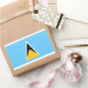 The flag of Saint Lucia consists of a cerulean blue field charged with a yellow triangle in front of a white-edged black isosceles triangle.[1] Adopted in 1967 to replace the British Blue Ensign defaced with the arms of the colony, it has been the flag of Saint Lucia since the country became an Associated State of the United Kingdom that year. Although the overall design of the flag has remained unchanged, specific aspects of it have been altered over the years.