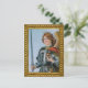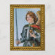 In this painting Three Archangels and Tobias by Francesco Botticini (1446-1498), a minor master of the Early Italian Renaissance, St. Michael heads up the column of travelers clad in contemporary 15th-century plate armour. Sword arm outstretched, he holds his weapon at the ready, ready to handle any danger on the road. St. Michael has auburn hair, a white openwork halo, red shoes, a short red cape with a green lining, and dark wings. In his free hand, he holds an orb, a symbol of authority, or a weight, a reference to his role in the weighing of souls at the Last Judgment. + Feast: September 29 + Image Credit (M 017): Detail of Three Archangels and Tobias, by Francesco Botticini (1446-1498), tempera on panel, 60 5/8” x 53 1/8” (154cm x 135cm), Florentine Italian, ca. 1470, Uffizi Gallery, Florence, Italy. {{PD-Art|PD-old-100}}. From an antique Stengel postcard in the designer’s private collection.