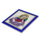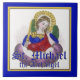 Look closely! Clad in draped armour and shouldering a sword, St. Michael the Archangel is actually depicted by the engraver here holding a balance scale in his right hand. The scale is an allusion to St. Michael's role as weigher of souls at the Last Judgment. The scale, however, has been obscured by the colourist who painted his military cloak red. The result is an image that appears to look down from heaven with loving concern rather than judgment. It has been used as such throughout the St. Michael the Archangel COLLECTION (M 009). + Image Credit (M 009): Antique hand-coloured devotional print of St. Michael the Archangel (N: 64) etched by F. Pischet, Linz, Austria, very early nineteenth century. From the designer's private collection of religious ephemera. + Feast: September 29 + Prefer a different colour combination? The Colour Palette postcard for this image provides suggested coordinating hues. Colour Palette postcards are found in an image's associated COLLECTION and in the Special COLLECTION devoted just to colour palettes.