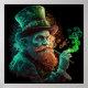 Celebrate St Patricks Day year-round with this smoking leprechaun poster. He is a very cool blend of various hues of green and orange making the design glow on the dark background.