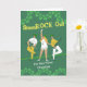 Personalise this St. Patrick's Day greeting card for a niece who is a performer and star of your clan. A St. Patrick's Day band is featured on the cover of the card surrounded by shamrock decorations. Art, image, and verse copyright © Shoaff Ballanger Studios, 2022.