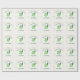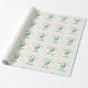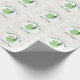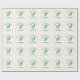 Elegant wrapping paper that features a big light green shamrock with a mischievous leprechaun playing his violin. The paper is also decorated with gold confetti on a white background.