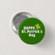 St Patrick's day button with a green shamrock. White Happy St. Patrick`s day text on a green background. For your St. Patrick`s day party or a perfect gift.