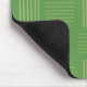This mouse pad has a mid-century modern design that looks like a weave with green lines on a field of darker green.