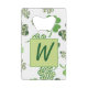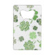 A cute credit card bottle opener features fun and colourful green clovers on a white background. In the centre is a place to insert your monogram initial. Personalise yours today!