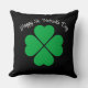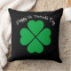 Throw pillow shown in black with a clover print, perfect for your St. Patrick's Day decor.