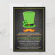 Fun St. Patrick's day birthday party invitations featuring a festive green top hat, auburn red moustache and colourful Irish flag colours confetti.