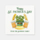 This St. Patrick's Day party napkin features a festive shamrock green and gold theme. The image features two beer mugs on either side of a leprechaun hat filled with four leaf clovers. A golden lucky horseshoe frames the image.