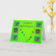 Green Hat's and Four Leaf Clover's that on a Card with a green back ground that's bright and colourful that's on a BIRTHDAY CARD.