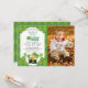 St. Patrick's Day Irish theme birthday party invitation for boy or girl. Invite features green diamond pattern, St Patrick's day leprechaun lounging on pot of gold, shamrock balloons and your child's photo. Easy to personalise with custom options.