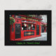 Postcard for St. Patrick's Day of the famous red pub with the hanging flowers baskets in Temple Bar district in Dublin, the capital of Ireland with a black border and the text 'Happy St. Patrick's Day!'