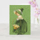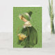 Green coloured glitter 4 leaves pattern, Clover leaf. Background, with a Scottish girl design on front holding a flower basket. Girl is dressed in St. Patrick’s Day theme. The image is available for a variety of products. Text adding is optional. This pattern was downloaded from http://www.pixelscrapper.com/