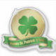 St. Patrick's Day illustration featuring a golden coin with shamrock and a ribbon displays "Happy St. Patrick's Day" in modern bold gold letters.