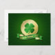 St. Patrick's Day illustration featuring a golden coin with shamrock and a ribbon displays "Happy St. Patrick's Day" in modern bold gold letters on an elegant green background.