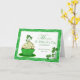 St. Patrick's Day cupcake for husband, paper greeting card with a theme of sweetness and love. Three leaf clovers decorate the dessert and part of the plaid frame on the right hand side. Numerous tint/shades of green are featured in the design. Art, image, and verse copyright © Shoaff Ballanger Studios, 2021.