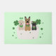 Three dogs popping out of a letter surrounded by lucky four leaf clovers. Perfect for St. Patrick's day.