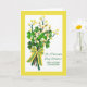 St. Patrick's Day, paper greeting card for a daughter. Super lucky clovers, shamrocks, furry catkins, and branches with lemon-yellow spring blossoms are tied together with a big bow (faux-not real). Add a custom message inside or even a photo if you like. Art, image, and verse copyright © Shoaff Ballanger Studios, 2021.