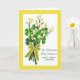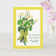 St. Patrick's Day card for a special and great mentor. Celebrate your work with your mentor with this bright and cheerful card for St. Patrick's Day. Card has bouquet arrangement of very lucky shamrocks, pussy willows, and yellow-blooming branches all tied together with a yellow/green dotted ribbon. Art, image, and verse © Shoaff Ballanger Studios, 2021.