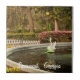 A travel photograph of the vintage Forsyth Fountain in Savannah, Georgia. A swan-shaped fountain with green water to celebrate the St Patrick's day holiday. Unique souvenir gift for your historical Savannah vacation.