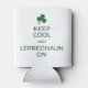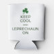 Celebrate St. Patrick's Day with this stylish and funny can cooler! Featuring the playful text 'Keep Cool and Leprechaun On' in bold green font, this design is perfect for Irish-themed parties or everyday use. The minimalist shamrock design adds a touch of luck to your drinkware. Keep your beverages cold while showing off your Irish spirit with this unique and eye-catching can cooler. Ideal for beer lovers, partygoers, and festive gatherings. Perfect for St. Patrick's Day gifts or barware!