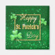 Elegant golden glitter glamourous St. Patrick's Day illustration featuring 3d gold typography inside a gold glitter border with classy shamrock clover on a precious green background.
