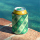 Super fun can coolers featuring a green Shamrock chequered pattern. Perfect for your St Patrick's Day party and of course keeping your beer cold!