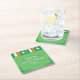 This paper coaster features a cute St. Patrick's Day typography in white with shamrocks and the flag of Ireland.