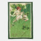 St. Patrick's Day towel with a beautiful Irish lass who is not afraid to fly up into the air on a pipe with green ribbon for harness. Surrounded by clovers she is a dashing St. Patrick's Day greeting.