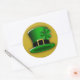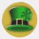 © Sunny Mars Designs. St Patrick’s Day Green Leprechaun Hat Custom Round Stickers – These adhesive stickers feature a green leprechaun hat with a black band around it, a gold buckle and a shamrock attached to it.