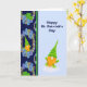 St. Patrick's Day card in light and dark blue with wildflower wreaths and green Gnomes. Thanks to the Hungryjpeg for some of the elements in the design. The words on the inside can be changed.