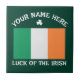 St Patrick's Day Ireland Flag Custom Name Shamrock Ceramic Tile
