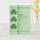 Green stripes and shamrocks is the design for an Irish blessing card. This pretty card is in various shades of green, the left side has stripes with large shamrocks and the right side has a shamrock medium green background.