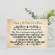 Saint Patrick's Day flat greeting card features an old Irish Blessing; "MAY THE ROAD rise up to meet you. MAY THE WIND be always at your back. MAY THE SUN shine warm upon your face; the rains fall soft upon your fields and until we meet again, MAY GOD HOLD YOU in the palm of His hand."