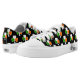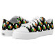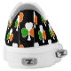 Cool low tops in black with a shamrock pattern in green, white, and orange, the colours of the flag of Ireland.